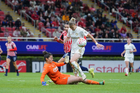 Zapopan, Jalisco, 6 de noviembre de 2025. Faustine Robert, durante el partido correspondiente a la ida de los Cuartos de Final del torneo Apertura 2025 de la Liga BBVA MX Femenil, entre las Chivas Rayadas del Guadalajara y las Diablas Rojas del Toluca, realizado en el estadio Akron. Foto: Imago7/Cristian Hernandez