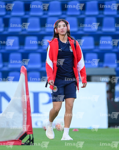 Ciudad de México, 16 de noviembre de 2025. Protocolo, durante el partido correspondiente a la vuelta de las Semifinales del torneo Apertura 2025 de la Liga BBVA MX Femenil, entre las Águilas del América y las Chivas Rayadas del Guadalajara, realizado en el estadio Ciudad de los Deportes. Foto: Imago7/ Alexis Chavez