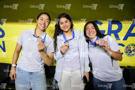 Ciudad de México, 16 de noviembre de 2025. Bárbara Del Real, Valentina Murrieta y Vanesa Paredes, durante el partido correspondiente a la vuelta de las Semifinales del torneo Apertura 2025 de la Liga BBVA MX Femenil, entre las Águilas del América y las Chivas Rayadas del Guadalajara, realizado en el estadio Ciudad de los Deportes. Foto: Imago7/ Alexis Chávez