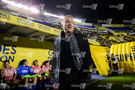 Ciudad de México, 16 de noviembre de 2025. Angel Villacampa, director técnico, durante el partido correspondiente a la vuelta de las Semifinales del torneo Apertura 2025 de la Liga BBVA MX Femenil, entre las Águilas del América y las Chivas Rayadas del Guadalajara, realizado en el estadio Ciudad de los Deportes. Foto: Imago7/ Mauricio Ruiz