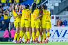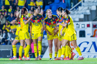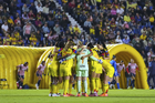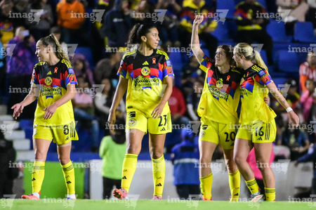 Ciudad de México, 16 de noviembre de 2025. Jugadoras del América femenil, durante el partido correspondiente a la vuelta de las Semifinales del torneo Apertura 2025 de la Liga BBVA MX Femenil, entre las Águilas del América y las Chivas Rayadas del Guadalajara, realizado en el estadio Ciudad de los Deportes. Foto: Imago7/ Carlos Vargas