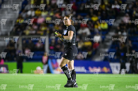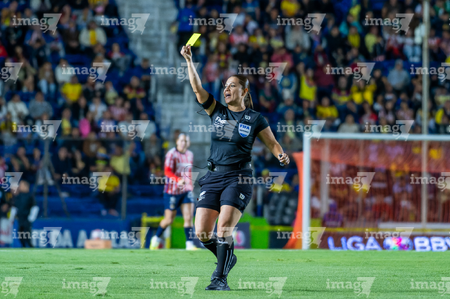 Ciudad de México, 16 de noviembre de 2025. Francia María González Martínez, árbitra central, durante el partido correspondiente a la vuelta de las Semifinales del torneo Apertura 2025 de la Liga BBVA MX Femenil, entre las Águilas del América y las Chivas Rayadas del Guadalajara, realizado en el estadio Ciudad de los Deportes. Foto: Imago7/ Alexis Chavez