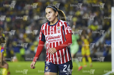 Ciudad de México, 16 de noviembre de 2025. Scarlett Camberos, durante el partido correspondiente a la vuelta de las Semifinales del torneo Apertura 2025 de la Liga BBVA MX Femenil, entre las Águilas del América y las Chivas Rayadas del Guadalajara, realizado en el estadio Ciudad de los Deportes. Foto: Imago7/ Mauricio Ruiz