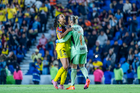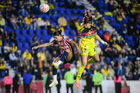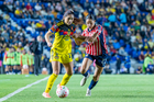Ciudad de México, 16 de noviembre de 2025. Annia Mejía y Sandra Paños, durante el partido correspondiente a la vuelta de las Semifinales del torneo Apertura 2025 de la Liga BBVA MX Femenil, entre las Águilas del América y las Chivas Rayadas del Guadalajara, realizado en el estadio Ciudad de los Deportes. Foto: Imago7/ Mauricio Ruiz