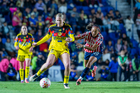 Ciudad de México, 16 de noviembre de 2025. Yamile Franco y Bruna Vilamala, durante el partido correspondiente a la vuelta de las Semifinales del torneo Apertura 2025 de la Liga BBVA MX Femenil, entre las Águilas del América y las Chivas Rayadas del Guadalajara, realizado en el estadio Ciudad de los Deportes. Foto: Imago7/ Alexis Chavez
