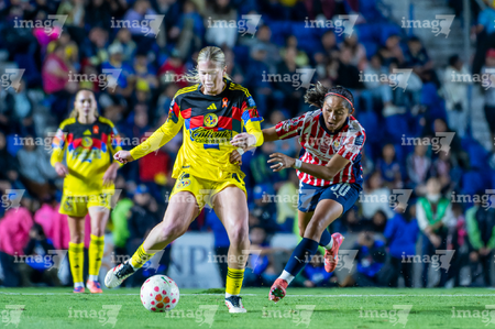 Ciudad de México, 16 de noviembre de 2025. Denise Castro, durante el partido correspondiente a la vuelta de las Semifinales del torneo Apertura 2025 de la Liga BBVA MX Femenil, entre las Águilas del América y las Chivas Rayadas del Guadalajara, realizado en el estadio Ciudad de los Deportes. Foto: Imago7/ Alexis Chavez