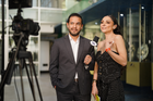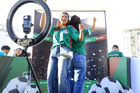 Torreón, Coahuila, 15 de noviembre de 2025. Jorge Carlos Mercader y Daniela Guajardo, durante un partido amistoso del MEXTOUR 2025, entre la Selección Nacional de México y la Selección de Uruguay, realizado en el estadio Corona. Foto: Imago7/Sebastian Laureano Miranda