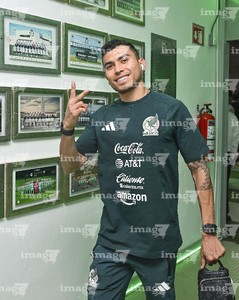 Torreón, Coahuila, 15 de noviembre de 2025. Roberto Alvarado "Piojo", durante el partido de preparación del MEXTOUR 2025, entre la Selección Nacional de México y la Selección de Uruguay, realizado en el estadio Corona. Foto: Imago7/ Etzel Espinosa