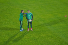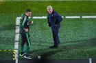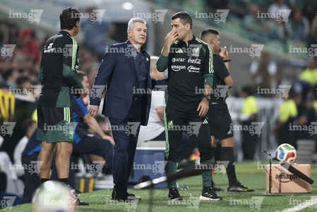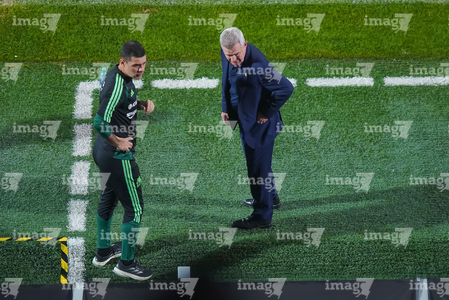 Torreón, Coahuila, 15 de noviembre de 2025. Fernando Schwartz y Javier Aguirre, director técnico, durante el partido de preparación del MEXTOUR 2025, entre la Selección Nacional de México y la Selección de Uruguay, realizado en el estadio Corona. Foto: Imago7/ Etzel Espinosa