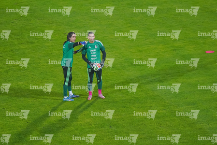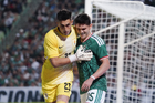 Torreón, Coahuila, 15 de noviembre de 2025. Carlos Acevedo y Ángel Malagón, durante un partido amistoso del MEXTOUR 2025, entre la Selección Nacional de México y la Selección de Uruguay, realizado en el estadio Corona. Foto: Imago7/ Erick Saavedra