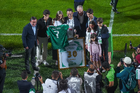 Torreón, Coahuila, 15 de noviembre de 2025. Oribe Peralta recibió un reconocimiento, durante un partido amistoso del MEXTOUR 2025, entre la Selección Nacional de México y la Selección de Uruguay, realizado en el estadio Corona. Foto: Imago7/Sebastian Laureano Miranda