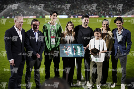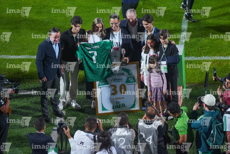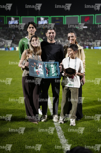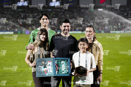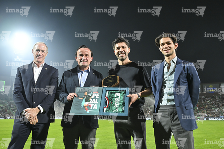 Torreón, Coahuila, 15 de noviembre de 2025. Oribe Peralta recibió un reconocimiento de Mikel Arriola, Ivar Sisniega y Alejandro Irarragorri Kalb, durante un partido amistoso del MEXTOUR 2025, entre la Selección Nacional de México y la Selección de Uruguay, realizado en el estadio Corona. Foto: Imago7/ Erick Saavedra