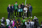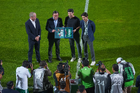 Torreón, Coahuila, 15 de noviembre de 2025. Oribe Peralta recibió un reconocimiento de Mikel Arriola, Ivar Sisniega y Alejandro Irarragorri Kalb, durante un partido amistoso del MEXTOUR 2025, entre la Selección Nacional de México y la Selección de Uruguay, realizado en el estadio Corona. Foto: Imago7/Sebastian Laureano Miranda
