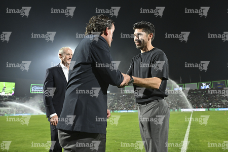 Torreón, Coahuila, 15 de noviembre de 2025. Jorge Campos y Luis Roberto Alves "Zague", durante un partido amistoso del MEXTOUR 2025, entre la Selección Nacional de México y la Selección de Uruguay, realizado en el estadio Corona. Foto: Imago7/Sebastian Laureano Miranda