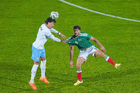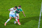 Torreón, Coahuila, 15 de noviembre de 2025. Joaquín Piquerez y Roberto Alvarado "Piojo", durante un partido amistoso del MEXTOUR 2025, entre la Selección Nacional de México y la Selección de Uruguay, realizado en el estadio Corona. Foto: Imago7/ Saul Perales