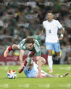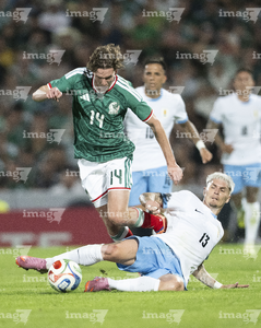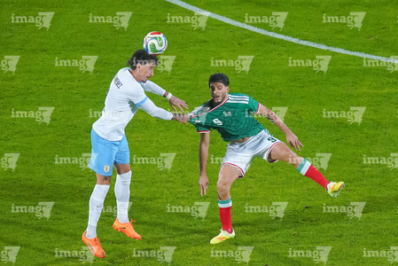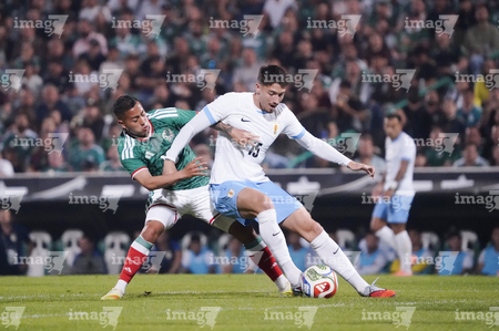 Torreón, Coahuila, 15 de noviembre de 2025. Guillermo Varela y Marcel Ruiz, durante el partido de preparación del MEXTOUR 2025, entre la Selección Nacional de México y la Selección de Uruguay, realizado en el estadio Corona. Foto: Imago7/