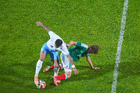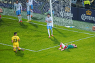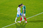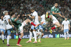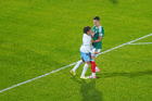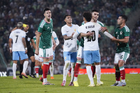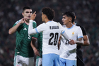 Torreón, Coahuila, 15 de noviembre de 2025. Johan Vásquez y Maximiliano Araújo en conato de bronca, durante un partido amistoso del MEXTOUR 2025, entre la Selección Nacional de México y la Selección de Uruguay, realizado en el estadio Corona. Foto: Imago7/Sebastian Laureano Miranda