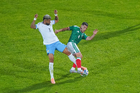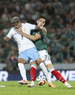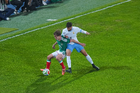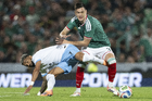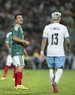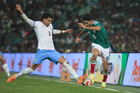 Torreón, Coahuila, 15 de noviembre de 2025.Johan Vásquez y Rodrigo Zalazar, durante el partido de preparación del MEXTOUR 2025, entre la Selección Nacional de México y la Selección de Uruguay, realizado en el estadio Corona. Foto: Imago7/ Etzel Espinosa