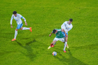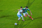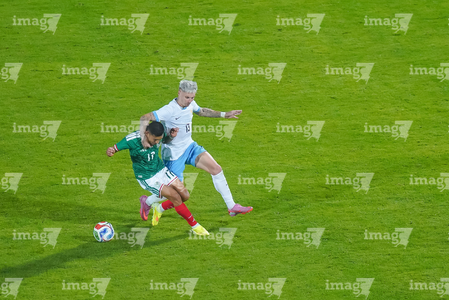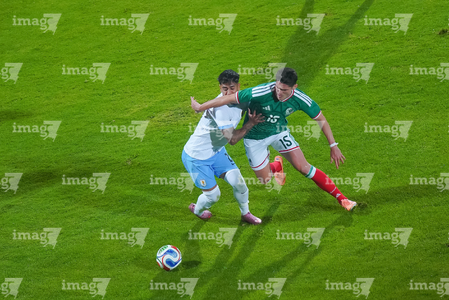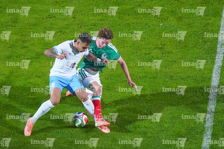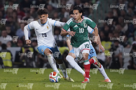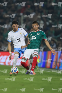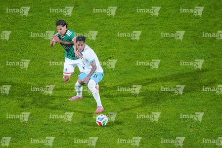 Torreón, Coahuila, 15 de noviembre de 2025. Rodrigo Zalazar y Marcel Ruiz, durante el partido de preparación del MEXTOUR 2025, entre la Selección Nacional de México y la Selección de Uruguay, realizado en el estadio Corona. Foto: Imago7/