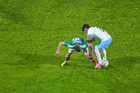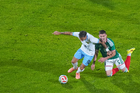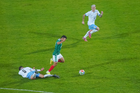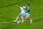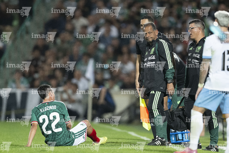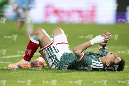 Torreón, Coahuila, 15 de noviembre de 2025. Hirving Lozano "Chucky" resultó lesionado, durante el partido de preparación del MEXTOUR 2025, entre la Selección Nacional de México y la Selección de Uruguay, realizado en el estadio Corona. Foto: Imago7/ Etzel Espinosa