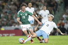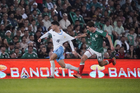 Torreón, Coahuila, 15 de noviembre de 2025. Mikel Arriola y Oribe Peralta, durante el partido de preparación del MEXTOUR 2025, entre la Selección Nacional de México y la Selección de Uruguay, realizado en el estadio Corona. Foto: Imago7/ Etzel Espinosa