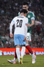 Torreón, Coahuila, 15 de noviembre de 2025. Maximiliano Araújo y Diego Lainez, durante un partido amistoso del MEXTOUR 2025, entre la Selección Nacional de México y la Selección de Uruguay, realizado en el estadio Corona. Foto: Imago7/Sebastian Laureano Miranda