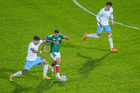 Torreón, Coahuila, 15 de noviembre de 2025. Gilberto Mora falla tiro a gol, durante un partido amistoso del MEXTOUR 2025, entre la Selección Nacional de México y la Selección de Uruguay, realizado en el estadio Corona. Foto: Imago7/ Saul Perales