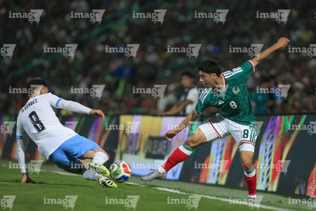 Torreón, Coahuila, 15 de noviembre de 2025. Erik Lira (D), durante un partido amistoso del MEXTOUR 2025, entre la Selección Nacional de México y la Selección de Uruguay, realizado en el estadio Corona. Foto: Imago7/ Saul Perales