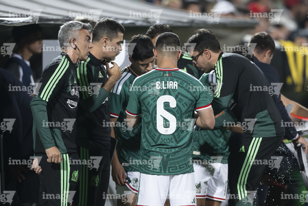 Torreón, Coahuila, 15 de noviembre de 2025. , Pol Lorente preparador fisíco y Israel Reyes durante el partido de preparación del MEXTOUR 2025, entre la Selección Nacional de México y la Selección de Uruguay, realizado en el estadio Corona. Foto: Imago7/ Etzel Espinosa