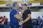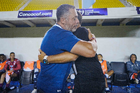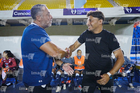 Ciudad de México, 18 de septiembre de 2025. Óscar Torres, director técnico y Angel Villacampa, director técnico, durante el partido de fase de grupos del Grupo A de la Concacaf W Champions Cup 2025-2026, entre las Águilas del América y las Tuzas del Pachuca, realizado en el estadio Ciudad de los Deportes. Foto: Imago7 / Diego Padilla