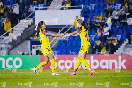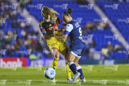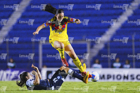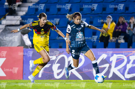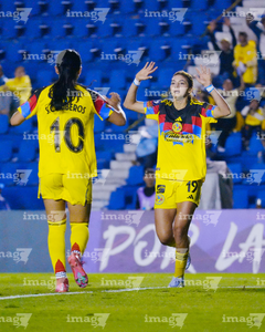 Ciudad de México, 18 de septiembre de 2025. Scarlett Camberos y Yirleidis Quejada, durante el partido de fase de grupos del Grupo A de la Concacaf W Champions Cup 2025-2026, entre las Águilas del América y las Tuzas del Pachuca, realizado en el estadio Ciudad de los Deportes. Foto: Imago7 / Diego Padilla