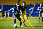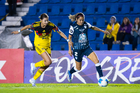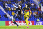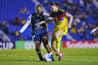Ciudad de México, 18 de septiembre de 2025. Andrea Pereira y Kimberly Rodríguez, durante el partido de fase de grupos del Grupo A de la Concacaf W Champions Cup 2025-2026, entre las Águilas del América y las Tuzas del Pachuca, realizado en el estadio Ciudad de los Deportes. Foto: Imago7 / Manlio Contreras