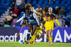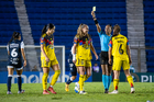 Ciudad de México, 18 de septiembre de 2025. Scarlett Camberos resultó amonestada, durante el partido de fase de grupos del Grupo A de la Concacaf W Champions Cup 2025-2026, entre las Águilas del América y las Tuzas del Pachuca, realizado en el estadio Ciudad de los Deportes. Foto: Imago7 / Diego Padilla