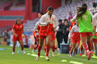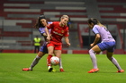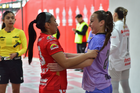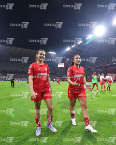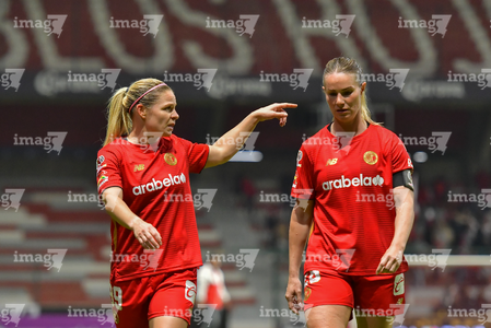 Toluca, Estado de México, 5 de enero de 2026. Amandine Henry y Kader Hançar, durante el partido correspondiente a la jornada 1 del torneo Clausura 2026 de la Liga BBVA MX Femenil, entre las Diablas Rojas del Toluca y las Xolas de Tijuana, realizado en el estadio Nemesio Diez. Foto: Imago7/ Jesús Esquivel