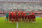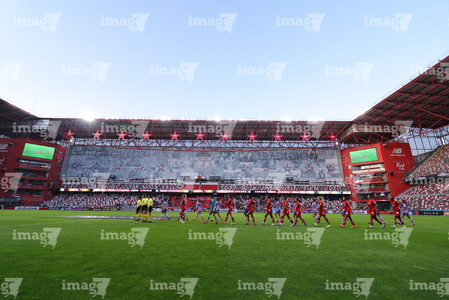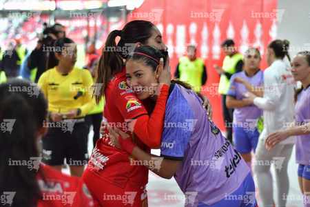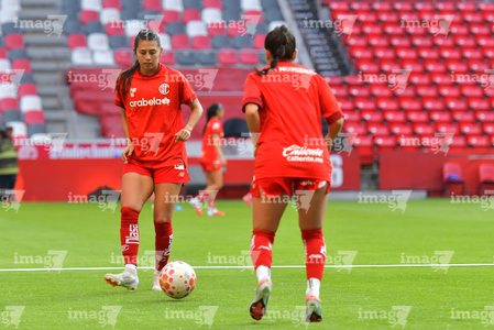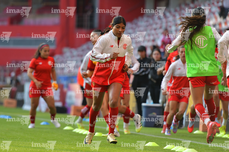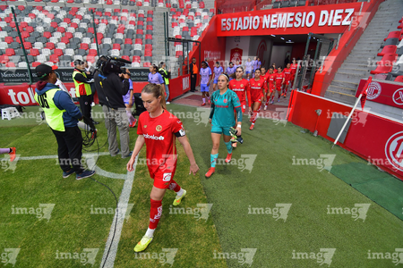 Toluca, Estado de México, 5 de enero de 2026. Protocolo, durante el partido correspondiente a la jornada 1 del torneo Clausura 2026 de la Liga BBVA MX Femenil, entre las Diablas Rojas del Toluca y las Xolas de Tijuana, realizado en el estadio Nemesio Diez. Foto: Imago7/ Jesús Esquivel