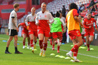 Toluca, Estado de México, 5 de enero de 2026. Jugadoras del Toluca femenil, durante el partido correspondiente a la jornada 1 del torneo Clausura 2026 de la Liga BBVA MX Femenil, entre las Diablas Rojas del Toluca y las Xolas de Tijuana, realizado en el estadio Nemesio Diez. Foto: Imago7/ Jesús Esquivel
