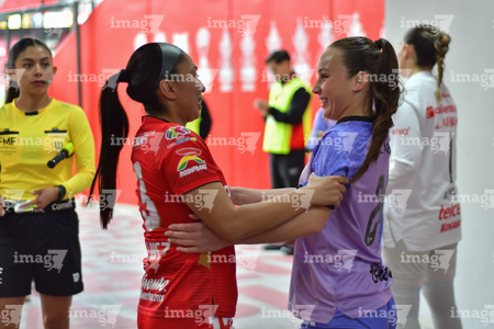 Toluca, Estado de México, 5 de enero de 2026. Natalia Macías y Bibiana Quintos, durante el partido correspondiente a la jornada 1 del torneo Clausura 2026 de la Liga BBVA MX Femenil, entre las Diablas Rojas del Toluca y las Xolas de Tijuana, realizado en el estadio Nemesio Diez. Foto: Imago7/Daniel Arriaga