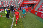 Toluca, Estado de México, 5 de enero de 2026. Protocolo, durante el partido correspondiente a la jornada 1 del torneo Clausura 2026 de la Liga BBVA MX Femenil, entre las Diablas Rojas del Toluca y las Xolas de Tijuana, realizado en el estadio Nemesio Diez. Foto: Imago7/ Arturo Hernández