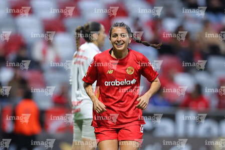 Toluca, Estado de México, 5 de enero de 2026. Dana Sandoval en festejo de gol, durante el partido correspondiente a la jornada 1 del torneo Clausura 2026 de la Liga BBVA MX Femenil, entre las Diablas Rojas del Toluca y las Xolas de Tijuana, realizado en el estadio Nemesio Diez. Foto: Imago7/ Jesús Esquivel