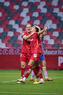 Toluca, Estado de México, 5 de enero de 2026. Natalia Macías y Eugenie Le Sommer en festejo de gol, durante el partido correspondiente a la jornada 1 del torneo Clausura 2026 de la Liga BBVA MX Femenil, entre las Diablas Rojas del Toluca y las Xolas de Tijuana, realizado en el estadio Nemesio Diez. Foto: Imago7/Daniel Arriaga