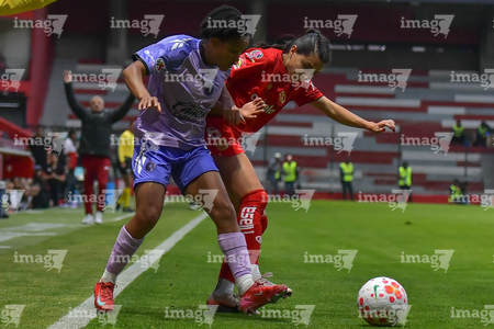 Toluca, Estado de México, 5 de enero de 2026. Daniela Carrandi y Yaneisy Rodríguez, durante el partido correspondiente a la jornada 1 del torneo Clausura 2026 de la Liga BBVA MX Femenil, entre las Diablas Rojas del Toluca y las Xolas de Tijuana, realizado en el estadio Nemesio Diez. Foto: Imago7/ Arturo Hernández