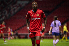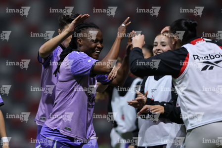 Toluca, Estado de México, 5 de enero de 2026. Amogelang Motau en festejo, durante el partido correspondiente a la jornada 1 del torneo Clausura 2026 de la Liga BBVA MX Femenil, entre las Diablas Rojas del Toluca y las Xolas de Tijuana, realizado en el estadio Nemesio Diez. Foto: Imago7/ Jesús Esquivel