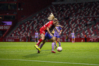 Toluca, Estado de México, 5 de enero de 2026. Eugenie Le Sommer, durante el partido correspondiente a la jornada 1 del torneo Clausura 2026 de la Liga BBVA MX Femenil, entre las Diablas Rojas del Toluca y las Xolas de Tijuana, realizado en el estadio Nemesio Diez. Foto: Imago7/Daniel Arriaga