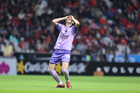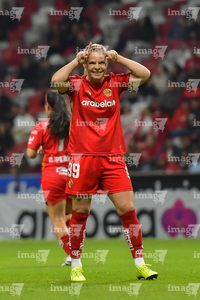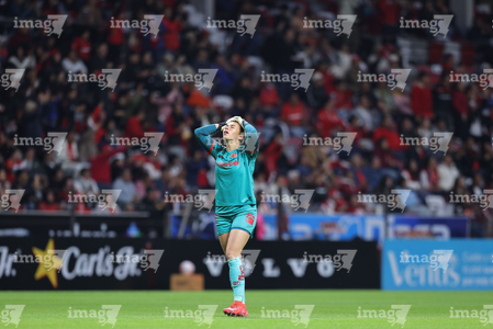 Toluca, Estado de México, 5 de enero de 2026. Kader Hançar en lamento, durante el partido correspondiente a la jornada 1 del torneo Clausura 2026 de la Liga BBVA MX Femenil, entre las Diablas Rojas del Toluca y las Xolas de Tijuana, realizado en el estadio Nemesio Diez. Foto: Imago7/ Jesús Esquivel