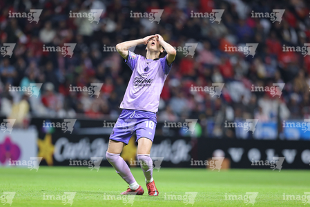 Toluca, Estado de México, 5 de enero de 2026. Jazmín Enrigue en lamento, durante el partido correspondiente a la jornada 1 del torneo Clausura 2026 de la Liga BBVA MX Femenil, entre las Diablas Rojas del Toluca y las Xolas de Tijuana, realizado en el estadio Nemesio Diez. Foto: Imago7/Daniel Arriaga