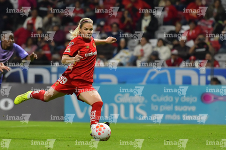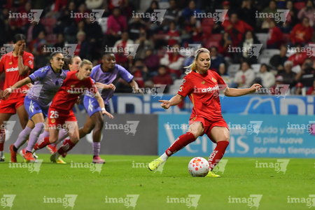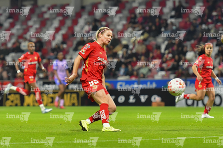 Toluca, Estado de México, 5 de enero de 2026. Kayla Fernandez, durante el partido correspondiente a la jornada 1 del torneo Clausura 2026 de la Liga BBVA MX Femenil, entre las Diablas Rojas del Toluca y las Xolas de Tijuana, realizado en el estadio Nemesio Diez. Foto: Imago7/ Arturo Hernández