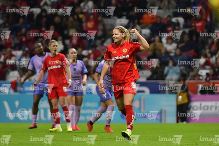 Toluca, Estado de México, 5 de enero de 2026. Eugenie Le Sommer en festejo de gol, durante el partido correspondiente a la jornada 1 del torneo Clausura 2026 de la Liga BBVA MX Femenil, entre las Diablas Rojas del Toluca y las Xolas de Tijuana, realizado en el estadio Nemesio Diez. Foto: Imago7/ Jesús Esquivel