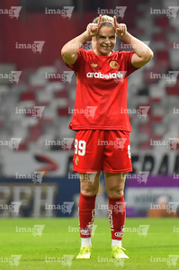 Toluca, Estado de México, 5 de enero de 2026. Faustine Robert en festejo, durante el partido correspondiente a la jornada 1 del torneo Clausura 2026 de la Liga BBVA MX Femenil, entre las Diablas Rojas del Toluca y las Xolas de Tijuana, realizado en el estadio Nemesio Diez. Foto: Imago7/ Jesús Esquivel