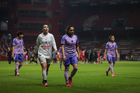 Toluca, Estado de México, 5 de enero de 2026. Eugenie Le Sommer y Amandine Henry, durante el partido correspondiente a la jornada 1 del torneo Clausura 2026 de la Liga BBVA MX Femenil, entre las Diablas Rojas del Toluca y las Xolas de Tijuana, realizado en el estadio Nemesio Diez. Foto: Imago7/ Arturo Hernández