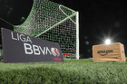 Torreón, Coahuila, 5 de enero de 2026. Balón de futbol Nike Control sobre caja de amazon, durante el partido correspondiente a la jornada 1 del torneo Clausura 2026 de la Liga BBVA MX Femenil, entre las Guerreras de Santos Laguna y las Águilas del América, realizado en el estadio Corona. Foto: Imago7/Saul Perales